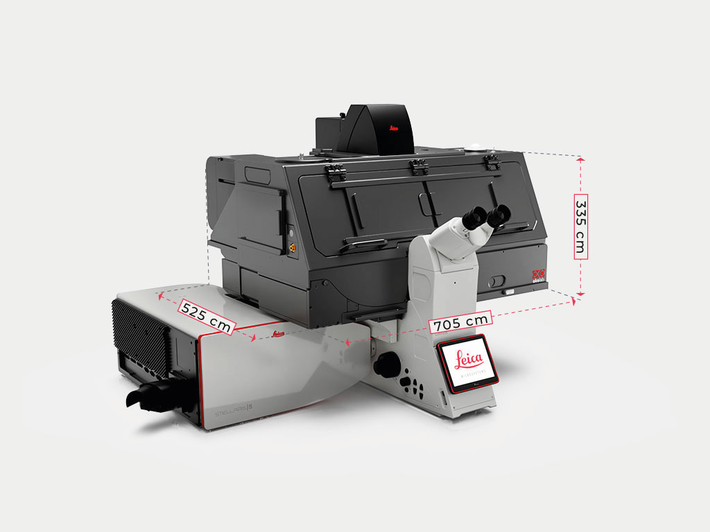 - A tilting front panel provides easy access to the sample and the microscope
